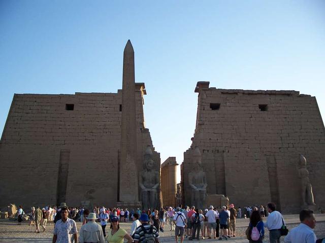 Le célèbre temple de Louxor fut construit par Aménophis III, le père d'Akhenaton, qui le consacra notamment à Amon : c'est le cœur de la religion traditionnelle. À noter au passage qu'il manque un obélisque devant le temple : il se trouve aujourd'hui place de la Concorde, à Paris. © DR