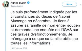 Vous vous souvenez certainement de cette histoire tragique. Quelques jours après Noël, le 29 décembre 2017, Naomi Musenga, une jeune mère de 22 ans, appelle à l’aide le Samu de Strasbourg en se plaignant de très violentes douleurs au ventre1. Au téléphone, sa voix est très faible. Elle peine à s’exprimer tellement elle souffre. Mais l’opératrice commence par lui dire qu’elle « n’a qu’à appeler SOS Médecins » ! Puis, lorsque Noémie murmure qu’elle est « en train de mourir », l’autre répond sur un ton agacé : « Mais oui, vous allez mourir, comme tout le monde… » Seulement quelques heures plus tard, Namoie Musenga est effectivement morte, faute d’avoir été soignée à temps. L’affaire, lorsqu’elle a été rendue publique après la mort de la jeune femme (plus de cinq mois après !!!) a déclenché une vive émotion dans l’opinion, et les responsables politiques ont fait comme ils font dans ces cas-là : réclamer des comptes. En témoigne ce “tweet” de la ministre de la Santé, Madame Agnès Buzyn. |