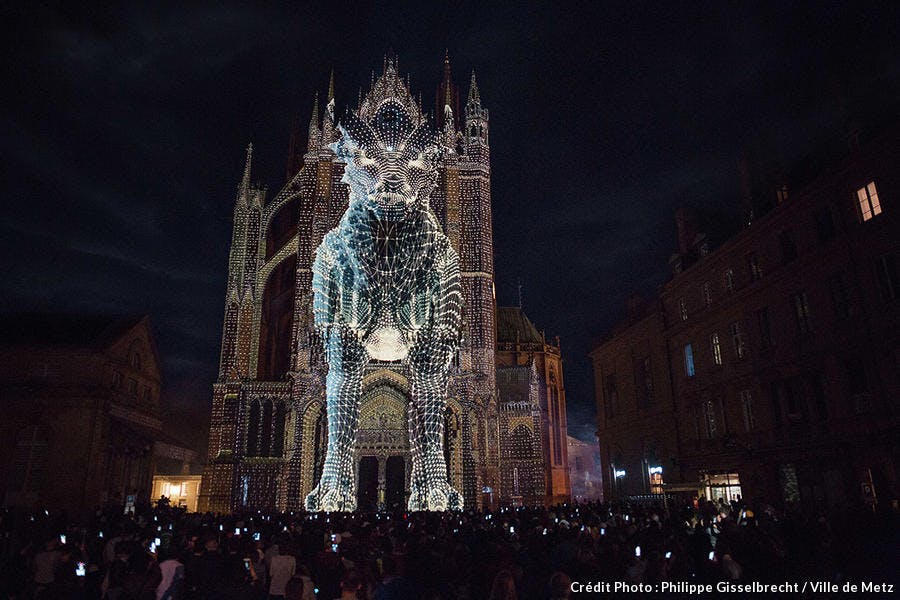 Après avoir fait danser les fontaines de la ville dans le spectacle Fontaines Dansantes qui alternait les phases de jets d’eau animés et colorés et les séquences vidéo projetées sur un mur d’eau, Metz propose Constellations de Metz pour la troisième année consécutive. Avec 500 rendez-vous culturels, 4 parcours artistiques et un mapping vidéo sur la cathédrale, la ville s’anime à la tombée de la nuit et invite le public à explorer un univers culturel d'une richesse incomparable, qui séduira les grands et les petits.